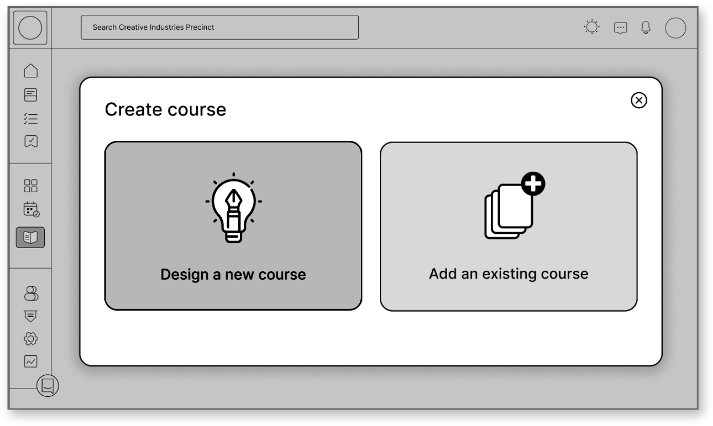 Upon creating the optimized new course creation workflow, I needed to validate my hypotheses. I began by mocking up the flow using mid-fidelity wireframes created in Figma. I then wrote a research plan, which involved testing users using a functioning prototype.